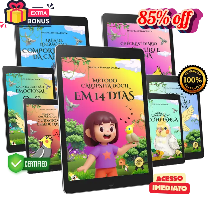 Aprenda o método prático e comprovado que transforma até as calopsitas mais ariscas em companheiras dóceis e confiantes mesmo que você seja iniciante.